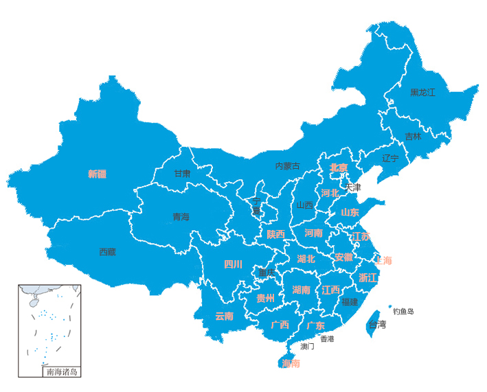 覆盖北京、河北、河南、陕西、上海、浙江、江西、山东、安徽、湖南、湖北、广东、广西、贵州、四川、海南、云南、新疆等数十个省区;