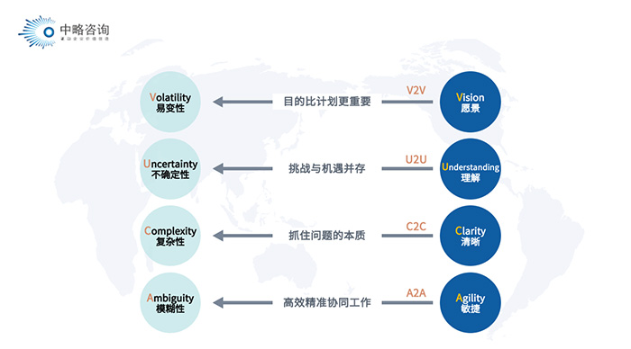 (1) 如何快速甄别战略实施中的出现的“模糊性、易变性和不确定性”要素,以及评估其对战略方向的影响?