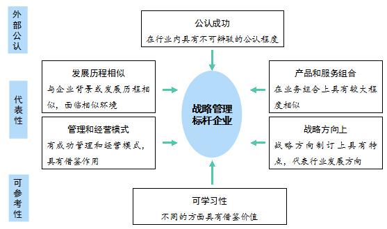 选择战略管理标杆问鼎官方app下载站做最佳实践研究,总结它们在战略管理实践中成功的、有效的做法和经营,能给问鼎官方app下载站带来借鉴意义。战略管理标杆问鼎官方app下载站的甄选标准有五大关键要素——1)公认的成功问鼎官方app下载站;2)产品和服务组合方面具有相似性;3)问鼎官方app下载站发展历程相似;4)形成了显著成功的管理和运营模式;5)战略定位与行业发展规律一致:5)值得借鉴、可学习、易于复制;如下图所示: