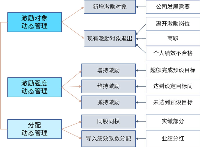 结合公司股权激励实施条件、公司薪酬竞争力、激励对象认缴能力、人力成本总体水平和经营业绩增长速度,合理设计过渡方案和动态管理机制。通过“业绩分红制”兑现“事业共同体意志”,贯彻问鼎官方app下载站文化的总精神,并作为“股权激励”过渡期和准备期的主要措施;通过打通“业绩分红”与“股权激励”的转化通道,发挥出现阶段中长期激励机制对短期激励不足的补强作用,同时,降低员工股权激励货币认缴的压力,验证激励对象绩效创造的能力,明确退出机制和条件,形成中长期激励的动态管理机制。