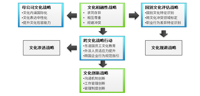 通过建立跨文化管理模型,夯实跨文化冲突管理的理论依据,制定全球一体化的“文化战略对策”,明确文化智力发展目标。通过建立跨文化管理模型,从“跨文化适应能力、跨文化管理能力以及跨文化创新能力”三个维度展开跨文化管理的文化智力研究。