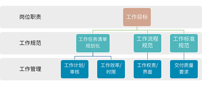 通过“技能培训-辅导实施-成果审核”的方式,指导各职能处室(专业部门)开展职能梳理、岗位说明书撰写、工作流程优化等基础性模块,最大限度的“实现知识和技能的转移,实现内部专业团队培养”。