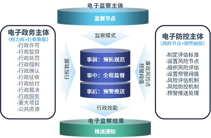 通过厘定“行政管理、电子政务、电子监督”三者的底层价值链及对应关系,构建电子监察的底层价值链、逻辑架构和电子监察平台系统结构。通过明确行政权力的监察要点—— 权力行使的“合法性、合规性、程序化、公开化、真实性”;监察重点:重点部位、重要节点的授益性权力行为节点,指导“电子监督体系的顶层设计和电子监督平台建设规划”,为电子监督平台建设奠定坚实基础。