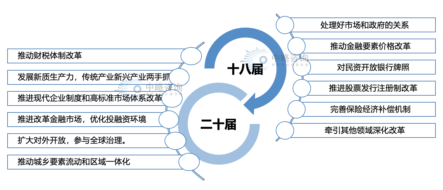 二十届三中全会与十八届三种全会类似,是围绕推进中国式现代化进行全面深化改革,均是在改革整体方向上的顶层设计。