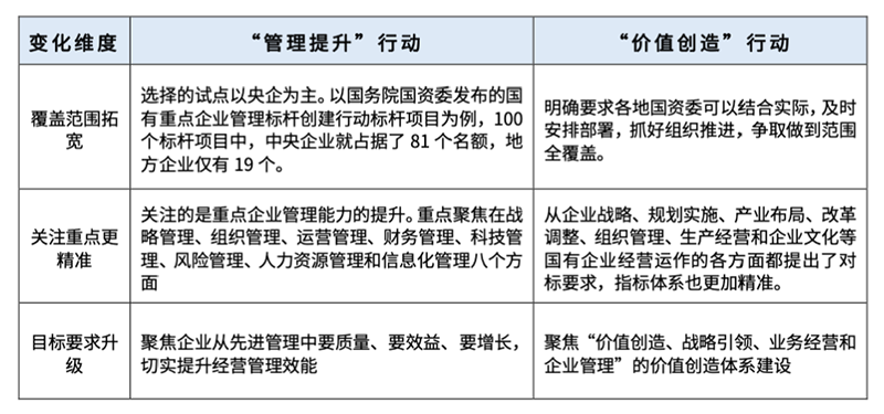 对标世界一流是国企改革的一项重点工程,与“对标世界一流管理提升” 行动相比,“对标世界一流问鼎官方app下载站价值创造”行动在覆盖范围、关注重点、目标要求上均有所创新和突破。反映了国有问鼎官方app下载站改革发展已经从经营管理层面深入到价值创造过程中,以提升发展质量效益效率为主线,以对标世界一流问鼎官方app下载站为抓手,全方位提升国企的价值创造能力。