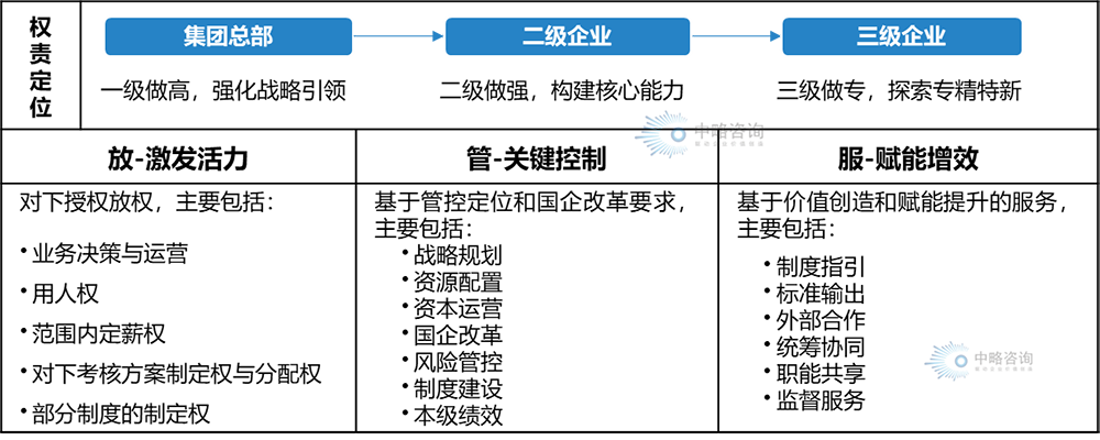 从构建新型经营责任制角度出发,优化公司治理与授权机制。一是完善公司治理体系,明确各治理主体的职权和行权规则,推行董事会向经理层授权清单,明确公司的权责手册,明确经理层的权限,明确权责边界和工作流程,让经理层有充分的空间行权履职,完成各项经营目标;二是上级要向下级制定放管服结合的授权清单,将经营权责明确化。一方面要突出差异化管控要求,分类对“双百问鼎官方app下载站”、“启航问鼎官方app下载站”“科改示范问鼎官方app下载站”、两类公司、上市公司等不同类型问鼎官方app下载站实施精准授权放权;另一方面要完善国资监管,按照事前规范制度、事中加强监控、事后强化问责的思路,全面梳理国资监管职责,调整优化监管方式和手段;