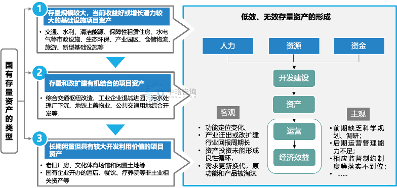 一方面,中央持续发力盘活存量资产扩大有效投资,释放经济价值,存量盘活步入快车道,政策导向逐步规范化、落地化;另一方面,国企盘活存量资产尽管取得了一定成效,但是受制于国企多年积累的历史遗留问题,仍普遍面临着缺乏资产的顶层规划、资产管理制度不完善、资产甄别效果差、地方债务风险防控压力大等一些现实问题。