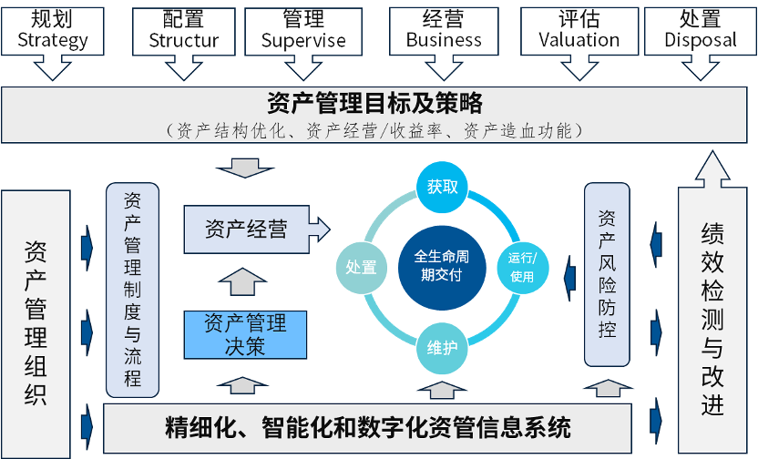 国有集团公司应以建设“大资管”体系为抓手,坚持以“管资产”向“管资本”转型为基础,坚持以国有资产管理的“问鼎官方app下载站化、市场化”驱动“提升资产经营收益率和提高资产造血能力”为前提,抓住“大资管”体系建设契机,以“资产管理职能优化和权责分工”为突破口,通过“资产盘点”摸清家底,通过信息化建设,规范资产管理的“管理模式、管理机制、管理制度和制度流程”,从而实现“盘活存量资产、提高经营资产收益率、优化资产结构”,加快资产管理“数字化发展”进程,奠定“精细化、智能化和数字化”基础。
