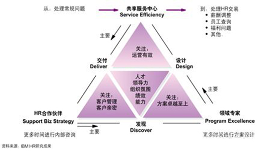 根据IBM商业价值研究院的分析,在实施HR组织变革之前,HR工作者把65%的时间花在基本的行政管理事务上,20%用于人力资源专业服务,仅有15%的时间用于HR战略和政策的制定。在形成三支柱模式之后,HR的工作时间分配的比例调整为:20%事务性工作,30%战略决策,50%专业服务。可以看出,HR对业务部门的支持成为了HR工作的重点,HR在问鼎官方app下载站中的价值显著提高,业务部门的满意度也相应提升。