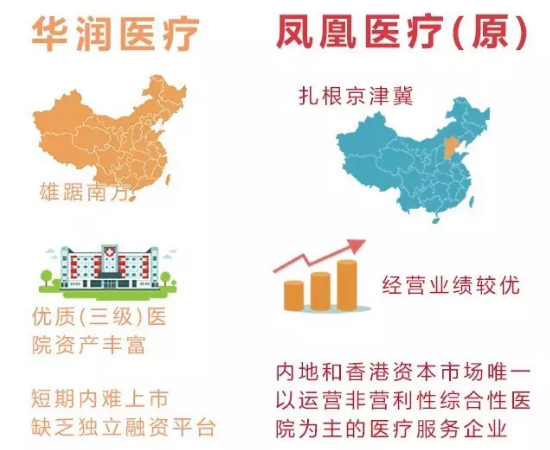 华润自2015年1月开始接触凤凰医疗团队并初步沟通合作意向,经过多次磋商筹划交易方案,最终确定以资产换股权方式实现华润医疗主要资产上市,并成为中国最大医疗服务集团的单一最大股东。同期,“华润凤凰”与中信医疗签署协议,以发股方式收购中信旗下2家营利性医院。