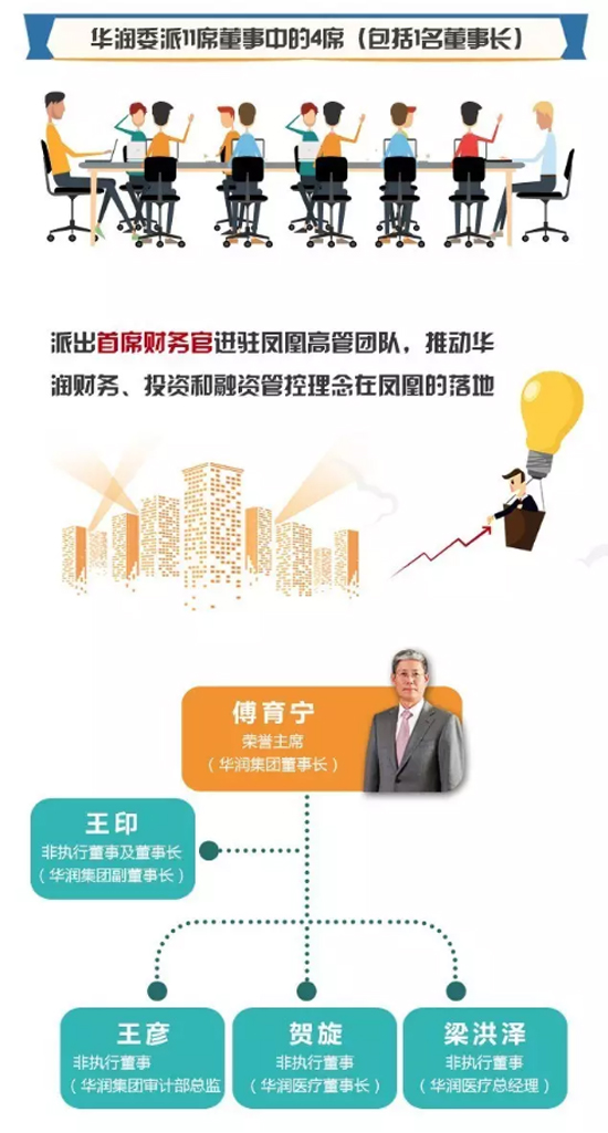 目前,华润医疗与凤凰医疗通过互派董事、高管参与公司治理,实现有效对接,已在公司治理架构上实现了整合。