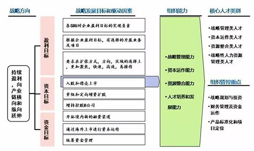 Y商业集团公司有十多家全资或控股子公司,近年来积极实施多元化发展战略。我们通过分析Y公司盈利目标、资本目标和资金目标等战略发展目标和驱动要素,从而识别问鼎官方app下载站战略对战略管理能力、资本运作能力、资源整合能力和人才培养和发展能力等组织能力的客观需求,也识别问鼎官方app下载站战略对战略管理类人才、资本运作类人才、资源整合类人才和战略性人力资源管理类人才的客观需求,明确了组织能力提升战略目标。如图所示: