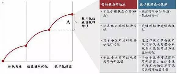 与之相对的数字化精益则专注通过改变工作流,质疑现有流程步骤和顺序等,来进一步优化整个制造关节的运营模式。