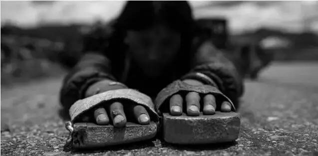 即使在拖拉机被撞以后,被迫要人手推拉车厢上路,队员依然坚持每拉一段路,就回过头,从起端开始把跪拜一丝不苟地补上。涉水的时候,尼玛扎堆没有因为困难而放弃跪拜的原则,整个队伍保持着跪拜的姿势。