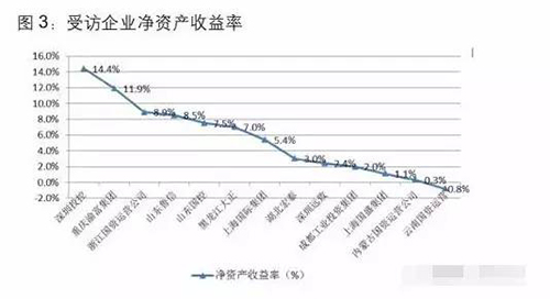 从收益水平看,不同地区由于市场化程度不同,资本运营能级不一,以及国有资本投资、运营公司的功能定位不同,各家问鼎官方app下载站资产收益状况差异比较明显。其中,拥有金融股权占比较高、市场化业务较多的问鼎官方app下载站,净资产收益率要明显高于以政策性、功能性业务为主的问鼎官方app下载站。如深圳投控以产权管理、资本运作及投融资业务为主,重庆渝富集团以股权类业务为主,收益率分别达到14.4%和11.9%。与此相对,内蒙古国资运营公司、云南国资运营公司等,以政策性和功能性业务为主,收益率分别为0.3%和-0.8%(见图3)。
