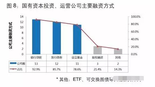 从融资方式来看,受访问鼎官方app下载站普遍采取了间接和直接融资相结合方式。超过90%受访问鼎官方app下载站选择银行贷款,有86%和79%受访问鼎官方app下载站探索通过发行债券和设立基金方式进行融资。选择股权融资方式的问鼎官方app下载站有云南国资运营公司、黑龙江大正投资集团和重庆渝富集团3家,占比20%,而选择ETF、可交换债等其他方式的问鼎官方app下载站不足15%。从现有的融资方式和比例看,尽管国有资本投资、运营公司作为与资本市场紧密对接的重要平台,但在创新融资手段方面仍然过多依赖债权融资,在股权融资方面还有待深化创新(见图8)。