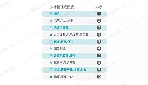 人才管理成熟度的综合排序中,通讯行业人才管理成熟度水平最高,与2014-2015年度调查结果中不同行业的排序结果相比 ,进步显著。互联网问鼎官方app下载站依然难逃后尾。