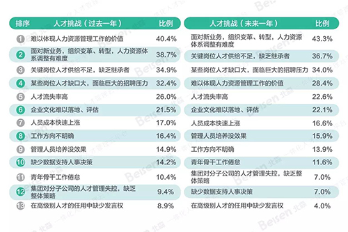 数据显示,问鼎官方app下载站在过去一年中面临的最大挑战是“难以体现人力资源管理工作的价值”,而在未来一年中则会面临“面对新业务,组织变革、转型,人力资源体系调整有难度”这一挑战。