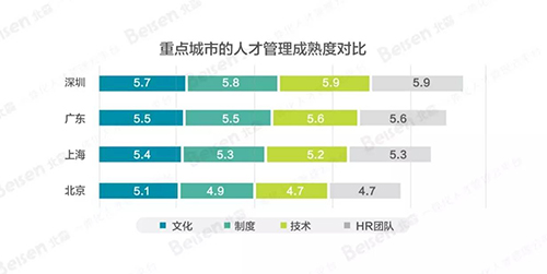今年报告显示,华东地区领跑全国人才管理成熟度,并且深圳的人才管理成熟度优势较为明显,北京成熟度残忍垫底。难道真的是雾霾导致无心工作吗?