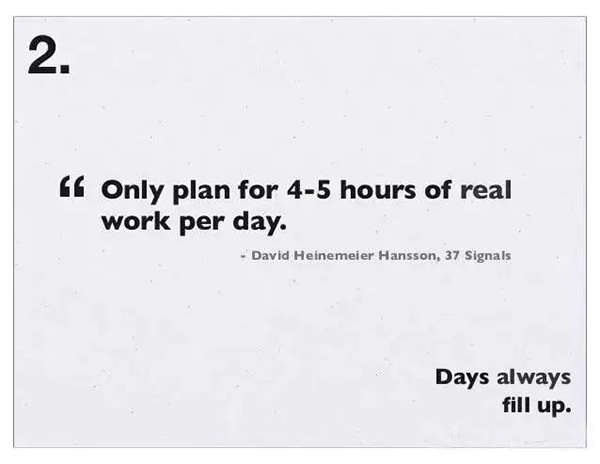 2、时间总会有的:每天只计划 4~5 小时真正的工作。