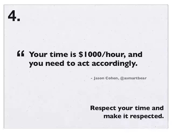 4、重视你的时间,并使其值得重视:你的时间值 1000 美元/小时,你得动起来。