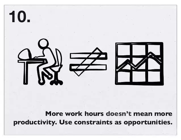 9、迭代工作,期待完美收工会令人窒息:“做完事情,要胜于完美收工”Facebook 办公室墙壁上贴的箴言。动手做,胜过任何完美的想象。
