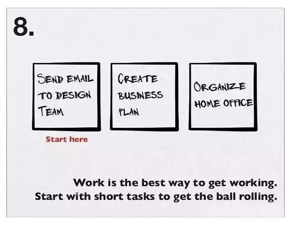 8、进入工作状态的最佳方式就是工作,从小任务开始做起,让工作运转起来。