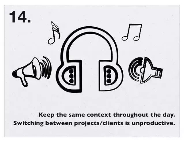 14、一整天保持相同的工作环境。在项目/客户之间切换,会效率低。