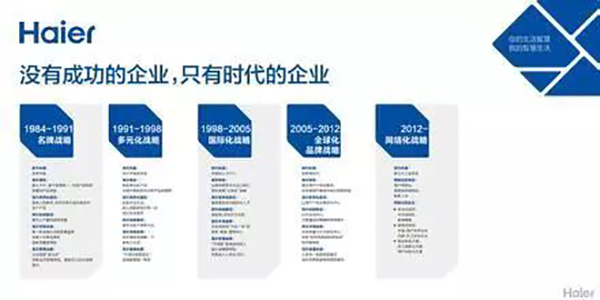 海尔的发展历程就体现了梯斯所说的动态能力,根据时代的变化,持续改变内部的组织结构,跟时代一起变。