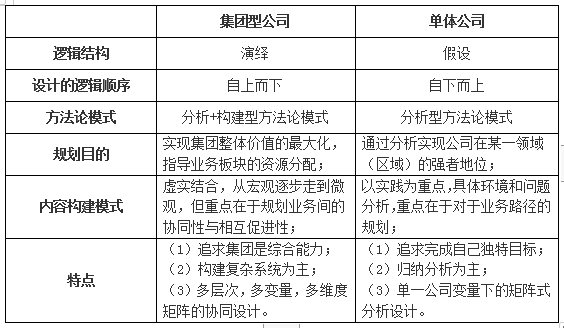 结合以上,集团公司战略与单体公司战略的区别如下: