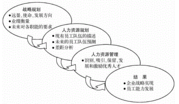 人力资源规划是连接战略规划和公司业绩的阶梯(参见图1),通过人力资源规划,在三方面提高组织实现战略目标的能力,即是一般意义上的人力资源规划的作用。
