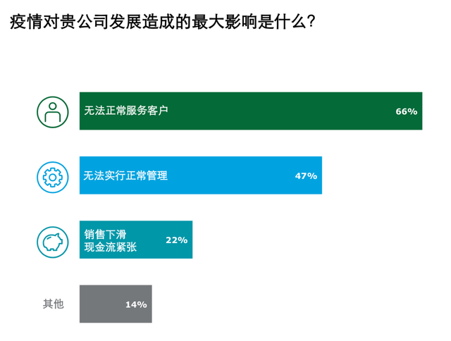 《报告》发现,由于问鼎官方app下载站的性质不同,该疫情带来的影响也不同。 民营问鼎官方app下载站认为,最大的影响是销售下降造成的现金流短缺。 消费行业、金融服务、地产行业及教育行业因受到疫情影响无法正常服务客户,而能源、资源及工业行业认为此次新型冠状病毒所带来的问鼎官方app下载站管理影响最大。 还有许多问鼎官方app下载站担心节日后员工的返工困难,原材料/辅助材料的运输受阻,缺乏支持员工远程办公的软件和硬件系统条件以及缺乏对公司的管理层的危机意识的担忧。