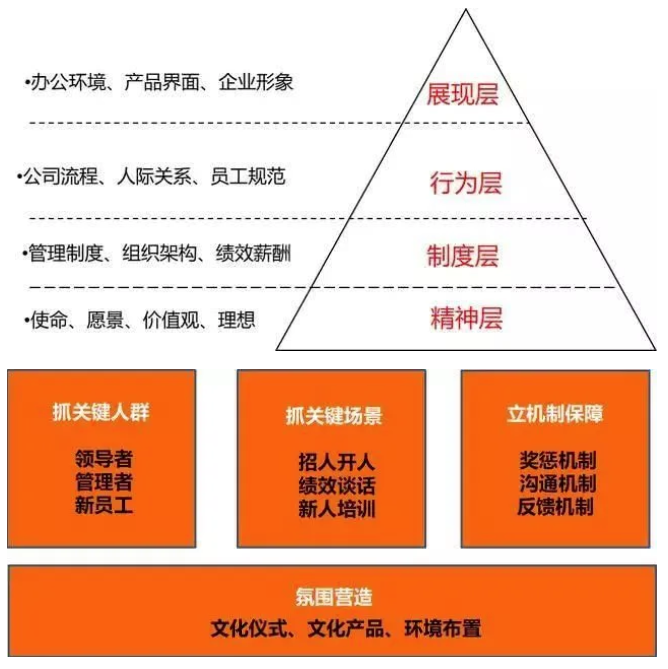 场景化:文化要落地在公司每一个员工能看到、能感知到场合,比如洗手间、食堂,见缝插针的植入公司文化性和知识性内容,功夫在细节。