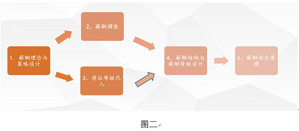 2、薪酬水平策略明确后,结合岗位价值评估结果,导入薪酬等级体系