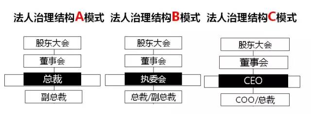 一般有三种治理结构的模式,每一种模式代表一种结构,决策机制都不一样。