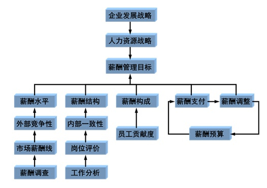 薪酬管理是在组织发展战略指导下,对员工薪酬支付原则、薪酬策略、薪酬水平、薪酬结构以及薪酬构成进行确定、分配和调整的动态管理过程。