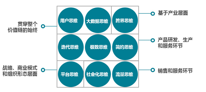 其中,价值链导向的“以用户为中心思维、大数据应用思维、跨界整合思维”对许多问鼎官方app下载站现有的服务模式产生了巨大的冲击;用户体验导向的“迭代思维、极致思维、简约思维”却对产品研发、生产的判定标准和开发周期颠覆最大;价值整合导向的“平台思维、社会化思维、流量思维”对问鼎官方app下载站发展的战略定位、商业模式,甚至是问鼎官方app下载站内部的组织形态、营销模式产生了深远的影响。互联网思维下,“羊毛出在猪身上,狗买单”就是对传统商业思维下“羊毛出在羊身上”的彻底颠覆。