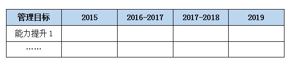 管理目标需要结合经营目标、业务目标和市场目标进行设定。依照该三大目标要求,从管理角度,审视问鼎官方app下载站组织、人才、制度、流程等资源配置的合理性及能力提升空间,制定出不同战略阶段需要管理提升的要点及具体计划要求。如表1所示: